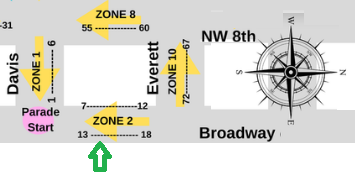 Please arrive at 9:45, curbside at 220 NW Broadway, Portland, OR 97209. Each person will need a ticket and need to check in with Jeannie Jonas or Cindi Berry at our group's parade staging area by 10:00 AM. All walkers under 18 years of age must be with a responsible adult. We have the 14th Position in the parade.